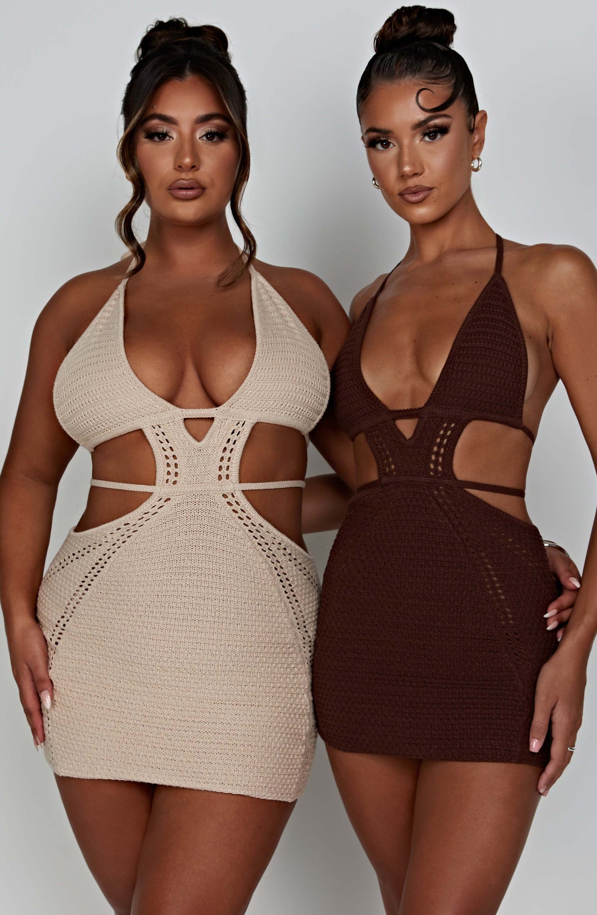 Our premium crochet knit mini dress Selena is effortlessly cool and the fresh cream hue is everything. With a slight stretch, Selena hugs your figure like a glove. We love the backless detail with ties and daring plunge neckline to frame your bust. Sleek hair and minimal jewellery is a must with this. Length to fit all, designed with all heights in mind, so you can alter to suit if you wish!