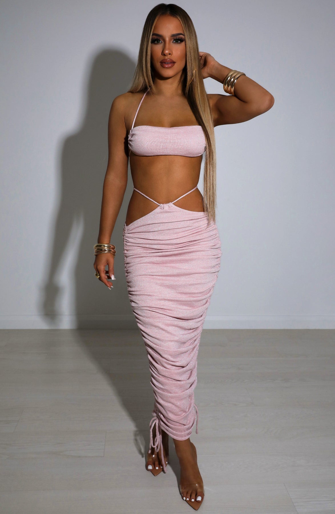 Valencia Maxi Skirt - Baby Pink Sparkle